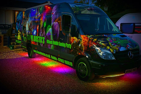 We arrive at your chosen venue, all you need is at least 8m for us to park, a plug and a router for us to plug into then your gaming party is ready. Its as easy as that.